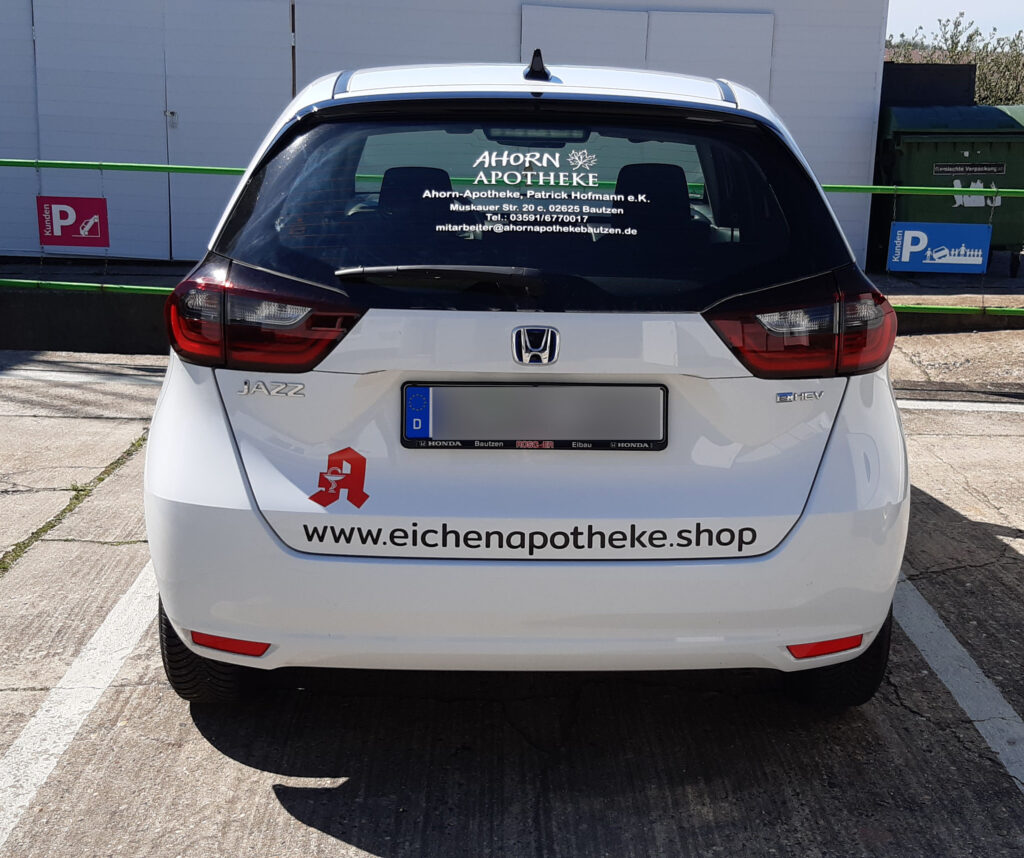 Leistungen: Fahrzeugbeschriftung Fenster-Glas-Beklebung